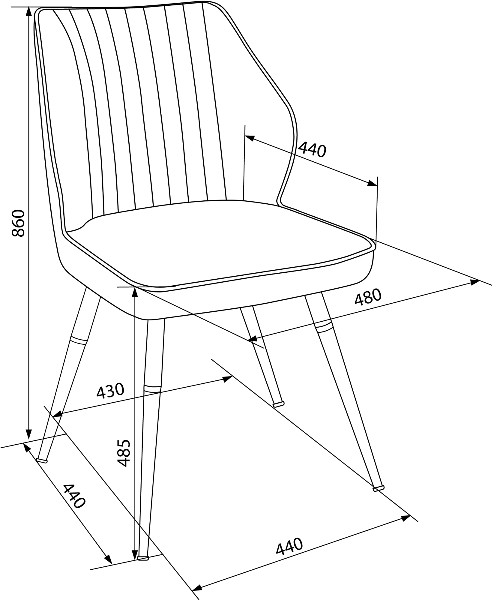 Размеры (ШхГхВ, мм): 480х460х860Стул для домаКонструкция:Поворотный механизмМеталлические ножки с пластиковыми заглушкамиОграничение по весу: 120 кгСоответствует стандарту BIFMAМатериал обивки: мягкий велюр Holland 18